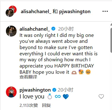 虎扑09月02日讯 今日,PJ华盛顿的妻子——演员Alisah Chanel在社媒晒出她送华盛顿劳斯莱斯,作为他的生日礼物的照片。